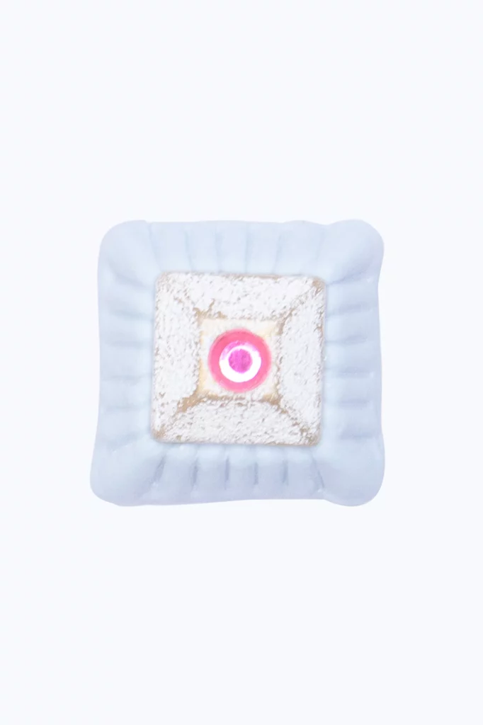 Desserts miniatures en porcelaine.Glaçage, nappage et coulis de fruits faits de strass, cabochons, boutons et perles.2025.